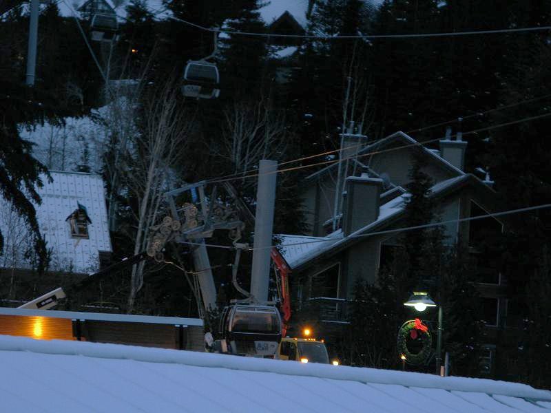 騒ぎの方へいってみるとなんといつも使っているブラッコムのエクスカリバーゴンドラの支柱が倒れ、キャビンがブラーンとなっているではないか