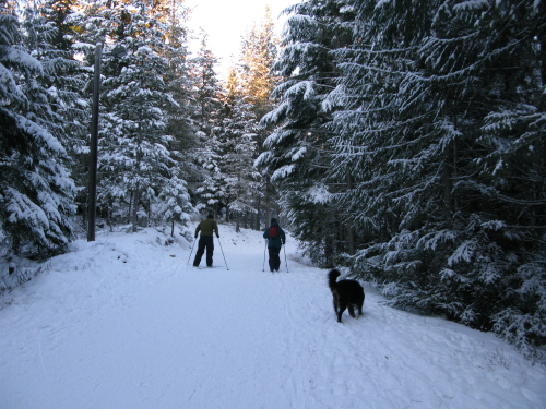 クロスカントリースキーを履いて犬を散歩させてるおじさんとお話しながら歩く。