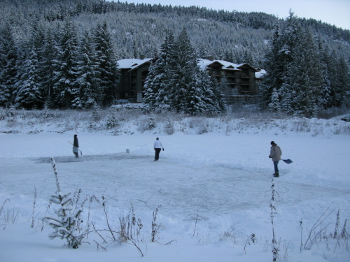 ふとみるとお手製のアイスリンクを作ってる人も。