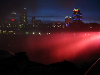 ちょうど暗くなってきてライトアップも始まったところだったけどカナダの方からライトが照らされるのでこっちからはうまく見えず・・
