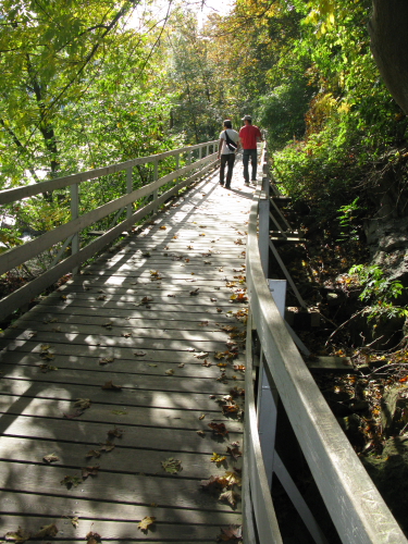 ナイアガラの滝からオンタリオ湖までの激流を横の遊歩道から眺められます。