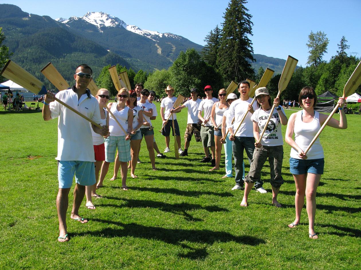 しばし練習したあと、回りのカヌーをよくよく見ると他の女の子たちは男性陣にはさまれた真ん中で優雅に漕いでるのにエンジン役でもある一番前で思いっきり漕いでる女はあたししかいないじゃん!?